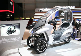 | 法國標致混合動力輕便摩托車概念車,前輪電力、后輪汽油驅動。 |