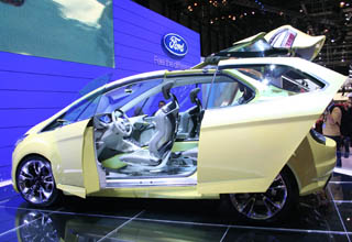 第79屆日內瓦國際汽車展,參展的世界各大汽車制造廠商幾乎都帶來了各自的概念車,其特點一是綠色環保概念車多;二是接近定型的概念車多。 受世界經濟和金融危機的沖擊和影響,本屆車展突出節能、環保車型,參展的概念車也不例外。 美國福特IOSIS