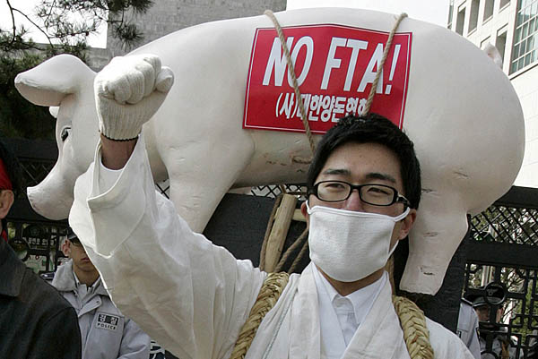 韓農民抗議韓國與歐盟自由貿易協定談判