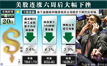 受銀行股大跌拖累,美國股市在連漲六周之后出現回調,20日紐約股市三大股指的跌幅均超過3.5%,并拖累全球股市下挫。美國股市如此大幅度的下跌究竟是股市的暫時修正,還是將進入下一輪的下跌?