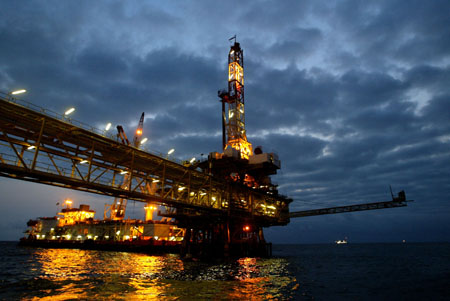 這是安哥拉海岸外石油鉆井平臺的夜景。新華社/法新 |