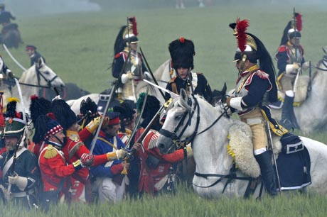 21日,比利時首都布魯塞爾南郊的滑鐵盧鎮舉行慶典活動,來自13個國家的1200多名演員再現了當年滑鐵盧戰役的壯麗景觀。