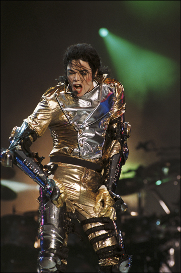 圖為1996年邁克爾·杰克遜在阿姆斯特丹演唱會表演。(資料照片) |