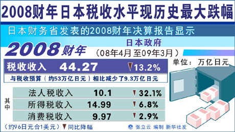 2008財年日本稅收水平現歷史最大跌幅