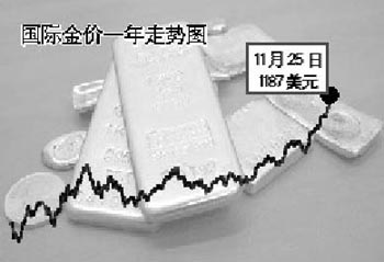 25日,由于美元匯率大跌,紐約商品交易所黃金期貨價格繼續刷新歷史新高,逼近1200美元心理關口。對沖基金大舉追捧黃金和近期各國央行積極購金,令投資者信心大增。世界最大黃金生產企業供給下降的消息也刺激金價繼續走高。