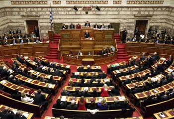 2009年12月23日,希臘議會通過2010年財政預算案。根據新的預算案,希臘2010年財政赤字占GDP的比例將從12.7%降至9.1%。新華社/路透 |