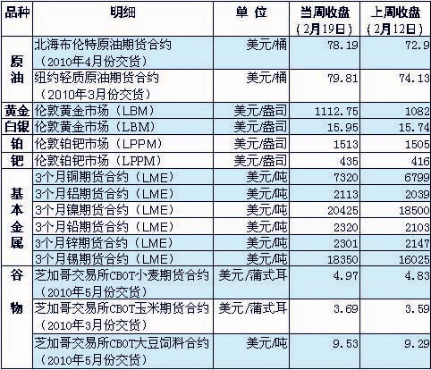 當周,受美元走軟和市場供應趨緊的影響,國際油價創出五周來新高,并引領大宗商品普漲。然而,在美聯儲18日宣布將聯邦貼現率從0.5%上調至0.75%后,多數大宗商品漲幅回落。 當周國際油價在多重利好刺激下,四個交易日連續上漲,19日更是逼近每桶80美元,刷新五周來新高。隨著投資者情緒轉變,美元沖高回落,也為以美元計價的原油期貨價格提供上行動力。 此外,伊朗總統周中警告一些大國不要試圖對伊實施新制裁,這一表態令投資者對中東地區原油供應可能受影響的擔憂加劇,也幫助推動油價上行。法國石油工人罷工令投資者擔憂美國未來汽油供應可能受影響。 在油價攀升的帶動下,當周國際金價漲多跌少,盤中價格更是觸及四周高點,不過消息面上國際貨幣基金組織(IMF)宣布將在公開市場出售黃金在一定程度上打壓了金價。 當周基本金屬價格供應稍緊的背景下穩步上漲。不過巴克萊資本的分析報告顯示,“市場基本面仍在向供過于需的方向發展!