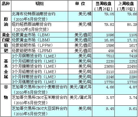 受歐盟計劃解決希臘債務危機以及美國疲軟的經濟增長等因素的影響,國際大宗商品價格本周普遍下降。 受到美國原油庫存大幅增加以及美元對歐元走強等因素影響,國際油價在23日小幅收高后,24日全面回落。24日美國能源部公布的庫存報告顯示,美國商業原油庫存增加了730萬桶,該數字大大高于此前市場預期100多萬桶。評級機構降低了對葡萄牙的主權評級,美元對歐元的匯率再次創出10個月的新高,造成以美元計價的商品期貨價格全面走軟。 分析人士指出,盡管歐洲領導人對拯救希臘債務達成一致,但是市場交易中的擔憂猶存。24日,由于葡萄牙2009年財政表現不佳,惠譽將葡萄牙的主權債務評級調低一個級別至“AA—”;同時,由于經濟復蘇脆弱,商業和消費性開支乏力,美國經濟第四季度的增速低于此前預期。美國商務部最新數據顯示,第四季度GDP增幅修正為5.6%,低于此前預估的5.9%。 巴克萊資本分析師研究報告指出:“受壓于更多的市場擔憂,大多數大宗商品價格走低。對歐元區政治風險的擔憂揮之不去,以及美國宏觀經濟數據的不振影響到了價格走勢! 國際金價24日受打壓亦跌破了1100美元關口。分析機構指出,隨著經濟復蘇與流動性緊縮的交織,主要經濟體的加息進程、通貨膨脹、歐元區的主權債務危機進展以及黃金的需求和IMF的剩余售金去向已成為主導黃金市場走勢的最主要因素。 基本金屬方面,除了銅價略有上漲外,大多數基本金屬本周均出現走跌態勢,但是巴克萊資本分析師指出,“越來越多的證據表明,全球基本金屬需求從所未有的最強勁復蘇正在成型”。 芝加哥交易所谷物期貨全線下跌,受到諸多利空因素影響,未來短期內小麥價格或將延續當周跌勢。國際谷物理事會日前表示,2010至2011年度的小麥庫存將增至1.99億噸的9年高位。而有關歐洲和俄羅斯向美國小麥的傳統出口市場拉丁美洲出口小麥的消息,表明價格較高的美國小麥的國際需求正日益縮減。