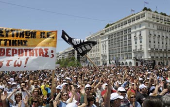 希臘兩大工會5月20日再次發起大罷工,這是今年希臘的第四次全國大罷工。繼續抗議政府增稅、削減工資和退休金的緊縮政策。希臘的危機并沒有過去。新華社發 |
