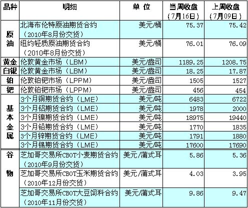美國勞工部16日發布的數據顯示,受能源價格下降的拖累,6月份美國消費者物價指數連續第三個月下跌,顯示出美國面臨的通貨膨脹壓力十分溫和,且呈現下行趨勢,甚至有陷入通貨緊縮的風險,使投資者買入黃金對沖通脹風險的需求大大削弱。有分析指出,全球實物黃金需求逐漸縮小,也對黃金期價構成下行壓力。受上述因素影響,紐約商品交易所16日黃金期貨8月合約每盎司下跌20.1美元,收于1188.2美元,跌幅為1.7%,收盤價創下5月21日以來新低。 受美國消費信心指數下滑等因素影響,國際油價16日繼續回落。當天公布的密歇根大學消費者信心指數顯示,美國消費者信心指數已從6月的76降至7月的66.5,為去年3月以來最低水平,令投資者對美國經濟復蘇前景產生憂慮。此外,當天公布財報的花旗銀行、美國銀行以及通用電氣公司均令投資者失望。 受歐洲股市下跌和美元匯率走低等因素影響,倫敦金屬交易所基本金屬期貨價格16日也全線下跌。 此外,芝加哥期貨交易所農產品期價16日走勢分化,小麥和大豆期價有所回落,但玉米期價小幅上漲。投資者對于歐洲、俄羅斯、加拿大等全球小麥主產區近期不利天氣或將令小麥產量受限感到憂慮,因此小麥期價15日暴漲至13個月以來的新高。市場存在超買現象,投資者紛紛選擇在周末前拋售小麥以鎖定利潤。而上周美國小麥凈出口銷售量低于預期也令小麥期價承壓。