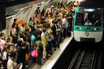 6月24日,法國交通系統工人因對薩科齊政府養老金制度改革不滿舉行全國大罷工,造成巴黎地鐵站內人滿為患。新華社/西霸 |