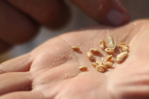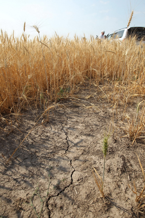 因為干旱,已成熟的小麥果實質量明顯差于豐收年。新華社記者 魯金博/攝 |