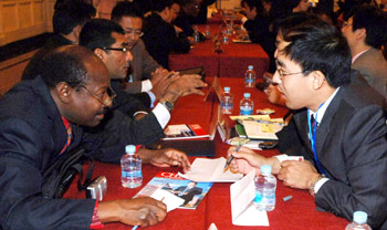 11月5日,第二屆中非企業家大會舉行洽談會。 這是參會人員在交談。(新華社記者 陳樹根 攝)