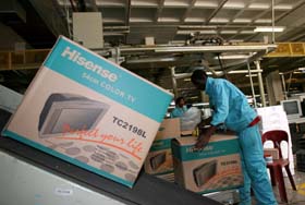 1996年10月,海信集團南非公司成立,海信在海外的第一個生產基地——年產10萬臺彩電和黑白電視機的工廠開工生產。近年來,海信在南非市場的占有率一直保持在12%以上。本報記者 王迎 攝