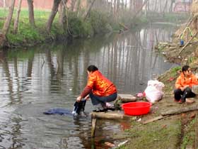 經濟條件較差的農民仍把 污河當成了生活用水水源地 |