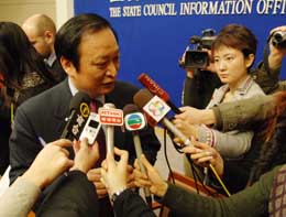 1月23日,國務院新聞辦公室在北京舉行新聞發布會,國家人口和計劃生育委員會主任張維慶就《中共中央國務院關于全面加強人口和計劃生育工作統籌解決人口問題的決定》及有關情況作了介紹,并答記者問。圖為國家人口和計劃生育委員會副主任王國強在回答記者的提問。新華社記者:陳樹根