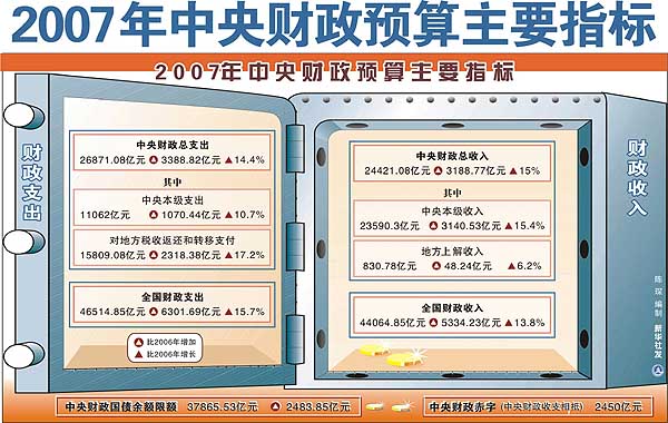 今年的國家預算報告在十屆全國人大五次會議開幕的當天就與代表們見面了,這樣,代表們將有更寬裕的時間來審查國家的“理財報告”。 細讀今年的國家預算報告,可以發現亮點很多。首先,引人注目的就是較快增長的財政收入。持續12年較快增長的全國財政收入,在2006年達到39343.62億元,直逼四萬億元大關。而在此之前的2005年,我國財政收入剛剛跨過三萬億元大關。 錢不是萬能的,而沒有錢是萬萬不能的。連年大幅增長的財政收入是政府各項工作向前推進的財力保證,新農村建設,解決看病難看病貴、上學難上學貴的問題,乃至國防建設等方方面面都需要真金白銀的支持。強大、穩固和平衡的國家財政是實現國富民強的保證。俗話說,手中有糧,心中不慌;同樣,手中有錢,心中也才能不慌。 財政收入“取之于民”,所以“錢從哪里來”是一個老百姓都關心的問題。應當說,2006年乃至近幾年來財政收入較快增長是國民經濟整體形勢好的具體反映,也表明財政收入增長機制漸趨完善,財政發展穩定性和協調性進一步增強。 從2006年我國主要稅種的增長情況來看,增值稅2006年完成12895億元,比上年增長20.5%。原因在于當年的工商業增加值增長較快。2006年,規模以上工業企業完成增加值增長(可比價)16.6%,工業品出廠價格指數上漲2.9個百分點,全口徑工業增加值現價增長約18%左右,社會消費品零售總額增長13.7%。所得稅中,企業所得稅、外商投資企業和外國企業所得稅共完成7081億元,增長28.5%;個人所得稅完成2452億元,增長17.1%。兩者加總為9533億元。企業所得稅較快增長的原因在于企業效益較好,全國規模以上工業企業實現利潤增長31%,增幅同比提高8.4個百分點,相應2006年預繳企業所得稅增長29.4%;同時,匯算清繳2005年企業所得稅1497億元,增長26.5%。而個人所得稅大幅增長的原因在于個人收入增長較快,以及居民儲蓄存款月末余額較快增長和調高存款利率及結息辦法改變。僅儲蓄存款利息所得個人所得稅就完成459億元,增長28.7%。 除經濟形勢好、效益提高這一關鍵因素外,國家預算報告還指出,2006年“財政收入增長較快也存在一次性、政策性和超常規因素”。主要是四個因素:中國銀行、中國建設銀行等國有商業銀行股改后利潤增加,所得稅大幅增收;開征石油特別收益金;探礦權采礦權價款收入集中入庫;受固定資產投資和工業生產增長較快、資源性產品價格上揚等因素影響,相關行業稅收超常規增長。剔除這些因素,財政收入增長和經濟發展情況是基本相適應的。 當然,財政收入的較快增長,與財政、稅務、海關等部門依法加強收入征管,實施科學管理,全面清理和規范稅收優惠政策,嚴格控制減免稅是分不開的。