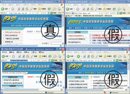 自去年以來,天津警方已經端掉數個制販假證的窩點,收繳了大量假冒證書,而這些證書大部分都可以在網上查到注冊號。既然是假證書,怎么還會登錄到網站上呢?經調查,發現這是一個“騙中有騙、假中有假”的圈套。 辦案警察說,除了域名為“www.chsi.com.cn”的“中國高等教育學生信息網”,其余全是假網站。 記者在網上搜索發現了不少有“中國高等教育學生信息網”中文網名的網站,其中幾個網站的域名為“http://www.chsi.com.cn”、“www.chs1.com.cn”、“http://www.chpos.com”、“http://www.chisi.com.cn”。與真正的“中國高等教育學生信息網”比較,從外觀看,真假網站幾乎沒有區別,從樣式到色澤甚至包括欄目、廣告、鏈接等細節都基本相同。原來,那些從假證販子手里買來的證書,根本不是注冊到教育部的學歷庫里,而是注冊到了制假證人自創的“克隆網站”中。 據犯罪嫌疑人供述,如果賣出假證不能上網查詢,就沒有人來買了。正是因為這些可以“上網驗證”,所以生意才如此“紅火”!拔覀兟撓盗藢iT的仿冒網站,做出假證后就把號碼給他們,由他們錄入到假網站中!