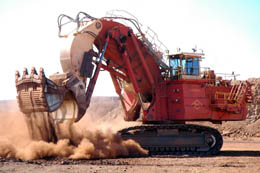 2005年10月18日,在西澳大利亞州首府珀斯,中國中鋼集團與澳大利亞中西部鐵礦公司簽署了一項總額15億澳元的鐵礦開發協議。圖為10月17日在中鋼集團與澳方合資的恰那鐵礦(西澳大利亞州)新礦點拍攝的進行采前平整作業的電鏟車。(本報資料照片)