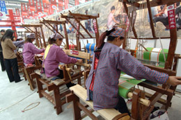 陜西咸陽一家土布工藝公司在“西洽會”上展示土織布制作過程,以期吸引客商,尋覓大市場。 本報記者:焦衛平