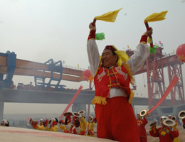 4月22日,東起陜西華陰新華山站,西至西安臨潼新站,全長79.732公里的鄭州至西安鐵路客運專線渭河特大橋正式開始架梁。鄭州至西安鐵路專線是我國實施西部大開發戰略的一項標志性工程。本報記者:焦衛平
