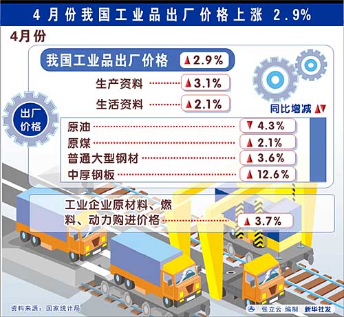 4月份我國工業品出廠價格上漲2.9%[圖表]