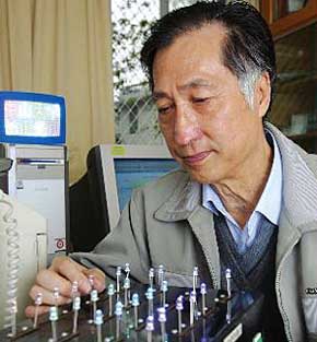 佛山市國星光電科技公司通過與蘇鏘院士領銜的工作室合作,其成果已成功地在廣東省關鍵領域重點突破項目和省重大科技項目招標中中標,并開展了佛山市第一個國家“863”計劃引導項目——大功率白光LED器件產業化關鍵技術研究與開發。圖為蘇鏘院士在實驗室。