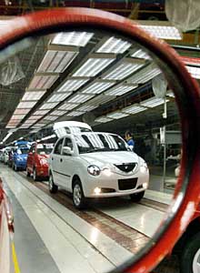| 工人在對即將下線的奇瑞QQ轎車進行檢測。本報記者 陳曄華 攝 |