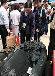 5月18日,幾名參會人員在徽商展會上欣賞歙硯。新華社發(潘成