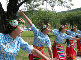| 香格里拉載歌載舞的少女。 | 中國內地第一個國家公園——香格里拉普達措國家公園,采取“國家所有、政府授權、特許經營、社會監督”的國際通行的基本管理模式與國際接軌,依法管理運行,使資源利用更為有效,避免多重管理,減少運行成本。試運行10多個月的普達措國家公園已充分顯現出生態保護與旅游發展的良性互動。