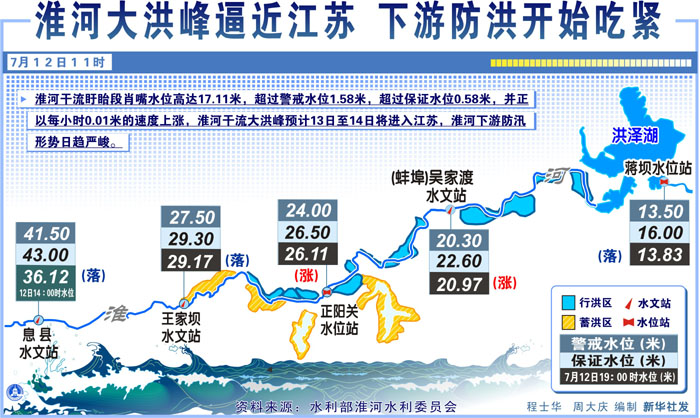 淮河大洪峰逼近江蘇 下游防洪開始吃緊[圖]