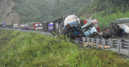 8月23日,重型水泥運輸車輛連環相撞導致公路交通中斷。當日凌晨三點多,在廣東英佛公路佛岡縣境內路段,四輛重型水泥運輸車相繼發生碰撞,部分車輛解體,導致水泥熟料大量泄漏。事故中有兩人當場死亡。目前事故原因仍在調查中。