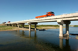 位于內蒙古新巴爾虎左旗的額布都格口岸是我國唯一向南的對蒙口岸。2005年11月,跨越中蒙界河哈拉哈河,全長164.9米額布都格——巴彥呼舒口岸大橋竣工通關,成為第一座中蒙界河橋。 新華社記者:任軍川