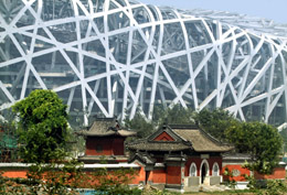 “在北京高校新建一部分場館,賽后成為大學生體育文化活動中心,滿足學生在室內上體育課、開展大型活動的需求”以及“把一部分場館建設在人口稠密、體育設施相對缺乏的大型社區”,成為了北京奧運場館規劃的指導思想。 除了高校奧運場館外,位于長安街沿線的五棵松體育館與周邊的文化體育設施以及配套商業設施,在賽后將成為北京西部社區居民商業、文化、體育、休閑的重要場所。 而在幾大場館群里最值得寫上濃彩一筆的,則是奧林匹克中心區——“鳥巢”和“水立方”所在地。按照《北京市“十一五”時期功能區域發展規劃》,奧林匹克中心區將依托一批奧運基礎設施及相關項目的建設,發展成為充滿活力、體現生機、生態友好的國際性體育賽事中心,成為集文化、體育、會展、旅游、科技、商務于一體的現代體育文化中心。顯而易見,繼舉辦亞運會之后,北京將形成更大的由體育產業延伸而成的建筑群體。 亞運村當年便是在大片菜地上興建而起,現在的奧運中心地區在破土動工前也是一片村莊。這片地區處于北京四環、五環之間,中軸線之側,交通四通八達十分便捷。為確保奧運會后長期使用,許多場地都預留了酒店、會議、商業、辦公等配套服務設施,這給賽后利用創造了良好條件。