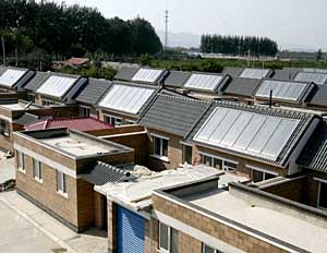 | 北京在平谷區大力推廣太陽能新民居。新華社記者 陳建力 攝 |