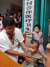 廣西河池市用新農合解決移民看病難問題。這是到村級衛生所值班的醫生在移民安置區給一名兒童看病。 新華社記者:張愛林 攝