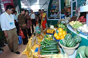 | 第四屆中國-東盟博覽會上,參會人員在關注中國的農產品。新華社記者 劉廣銘