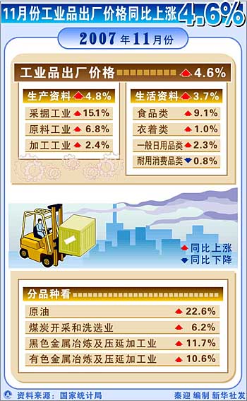 11月份工業品出廠價格同比上漲4.6%[圖表]