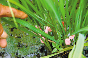 危害水稻生長的福壽螺。本報資料照片 | 外來生物入侵引起高度重視