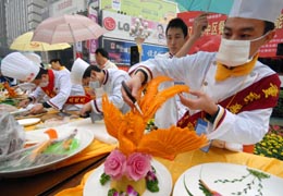 重慶餐飲業農民工正在比賽技能。 | 編者按: