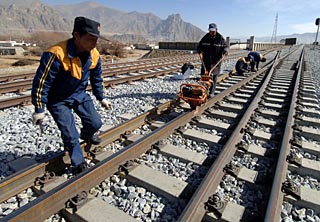 | 中鐵天路養護工程有限公司的工人在西藏堆龍德慶縣境內對青藏鐵路進行檢查和養護。新華社記者 覺果
