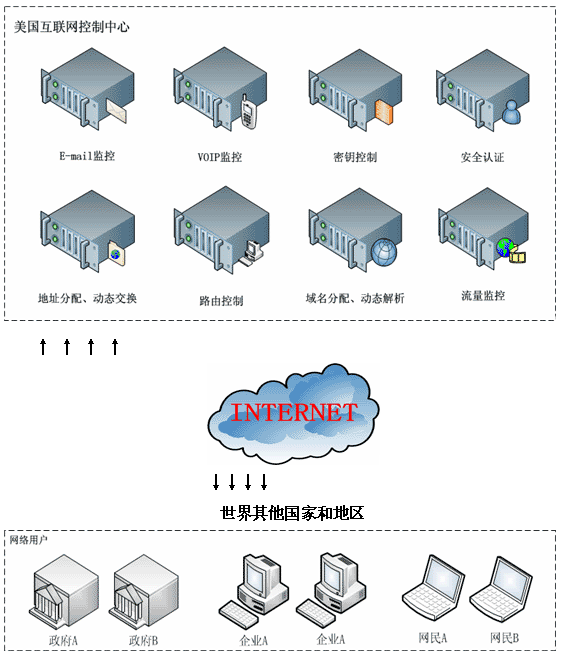 1、美國是現有互聯網游戲規則的制定者,是互聯網核心硬件設施的最終控制者。