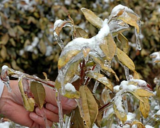 | 安徽大別山暴雪重災區岳西縣,茶葉上覆有數厘米厚的冰層。新華社記者 程士華