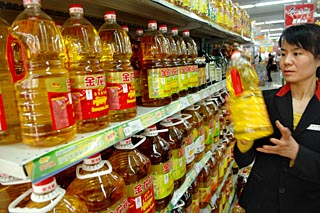 | 寧夏加大食用油儲備,提高應急處置能力。3月9日,銀川新華百貨連鎖超市員工正在擺放食用油。新華社記者 李紫恒