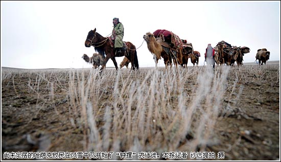 一家老小都在馬上,幾峰駱駝馱著蒙古包和鍋碗瓢盆,三兩只忠實的牧羊犬照應著羊群邊吃邊走。阿勒泰草原上的哈薩克族牧民,數百年來,就這樣南北往返,每年搬家80余次。如今,當地政府實施的“牧民定居”工程,正在改寫著這一歷史。 新疆阿勒泰地區行署介紹,截至目前,全地區累計定居牧民8914戶,約三成牧民家庭實現了定居。計劃從2008年起,3年內再實現6000戶牧民定居、轉移安置牧民3萬人。 2000年第五次全國人口普查數字顯示,我國哈薩克族人口總數為125.04萬人,而包括阿勒泰地區在內的伊犁哈薩克自治州,其哈薩克族人口就有108.74萬人。伊犁哈薩克自治州各地哈薩克牧民逐漸定居,意味著我國哈薩克族人民的生產生活方式,發生了重大改變。 “為什么要讓牧民定居?”阿勒泰地區行署副專員戴建新說,“(牧民)一年搬家80多次,什么樣的現代生活條件都談不上;牧民‘逐水草而居’,飼養牲畜效率也遠遠比不上定居飼養,原先20畝天然草場才能承載的牲畜,現在用一畝地的人工草場就足以養活”。 人口與草場之間的矛盾,使得牧民定居工作更顯迫切。戴建新說,上個世紀80年代中期,阿勒泰地區只有1.5萬戶至1.6萬戶的哈薩克族牧民。如今,這些牧民家庭總數已經發展到2.5萬余戶!安輬鲞是那么大,但一個有著3個兒子的牧民家庭,已經變成一分為四了!背d的草場難以讓牲畜吃飽,牲畜就刨草根吃,這又使草場退化更加嚴重。 目前,阿勒泰地區可利用草場的退化面積已達70%,其中嚴重退化面積達40%…… 福?h齊干吉迭鄉賽克露村的哈薩克族牧民阿德里汗今年65歲,如今,他家已經在當地政府的資金補貼之下蓋起了房子,過上了定居生活。阿德里汗說:“往年,家中6口人,500只羊、25頭牛和15匹馬,都要在阿爾泰山和沙吾爾山之間將近600公里的路上,走個來回。生病,只要不是大病,都得挺著! 阿德里汗說,更要命的是,不管你家里有多少牲畜,只要碰上大的雪災,可能就一夜之間全完了。據福?h畜牧局統計,1949年至1999年間,全縣共發生過10次較大規模的自然災害,平均5年一次,共損失牲畜40.7萬頭。其中1966年和1976年兩次災害致使25.7萬頭牲畜死亡,當年全縣存欄牲畜損失過半。 阿德里汗說,定居一年多來,家里通了電,用上了電燈、電視和冰箱,這些享受以前在游牧生活中想都不敢想,F在年輕人每天看電視,許多人考慮出門打工、做生意,不想回到山里去了。 |