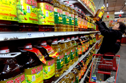 前不久沈陽市食用油價格開始下調。一位顧客在沈陽大東副食商場選購食用油。新華社記者:謝環馳 攝 |