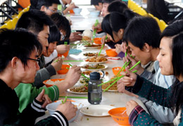 高校食堂力!捌絻r飯菜”。寧夏大學幾名學生正在第三學生食堂用餐。新華社記者:李紫恒