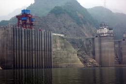 圖為位于都江堰與汶川交界處、岷江上的紫坪鋪大壩。記者從四川水利部門獲悉,在經過125個小時的奮力搶修后,紫坪鋪水電站已于17日17時52分向四川電網恢復供電。新華社記者:戴勁松 攝