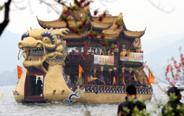 西湖餐飲船船型設計提出四種方案供選擇:方案一,借鑒中國古代官船特色,上層建筑四角昂翹、高低錯落,以歷史古都特有“紅”、“黃”為主色調;方案二,采納傳統江南民居中白墻黛瓦風貌;方案三,突破西湖上畫舫船的傳統造型,突出簡潔流暢、富有時代感的現代簡約特色;方案四,借鑒杭州城標圖案設計船型。目前,管委會尚未透露最終將選擇哪種方案作為餐飲船造型定稿。 按照規劃,餐飲船經營將走精致、高端路線。每艘長約20米、高約6米,主船體分為兩層,一層船艙兩側采用大面積玻璃圍合,設置駕駛室、衛生間、廚房和餐廳,以用餐為主;二層船艙設計為通透式亭屋結構和露天平臺,設置餐廳和觀景臺,供客人用餐、品茶、觀景、觀看文藝表演。 “杭州西湖一直以山水秀美、歷史悠久享譽世界,”市民王小姐說:“我覺得在西湖上增加這些各具風格的餐飲船能錦上添花! 早在1986年,樓外樓飯店就推出一艘餐飲船,?吭跇峭鈽情T前碼頭。樓外樓副總經理蔣紅介紹,飯店去年投資近600萬元,又推出一艘“樓外樓號”畫舫,船體金碧輝煌,可供50人游湖、20人用餐!皹峭鈽翘枴碑嬼车挠魏M用是每小時2000元,用餐費每桌定價約在萬元以上。