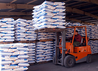 | 在長春玉米深加工轉化龍頭企業——大成集團,工人在運送產品。新華社記者